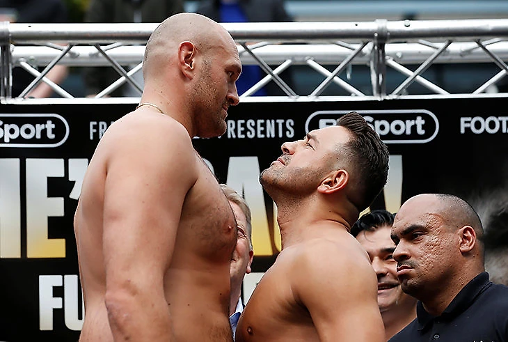 На взвешивании вскрылся весь масштаб катастрофы: у боксеров чудовищная разница в габаритах. Фьюри тяжелее на 30 кг: Сефери показал 95 кг, а Фьюри – 125. При этом соперник был на голову ниже ирландца и выглядел как его младший брат. После дуэли взглядов Тайсон поднял Сефери на руки. Это было одно из самых милых взвешиваний в истории бокса.