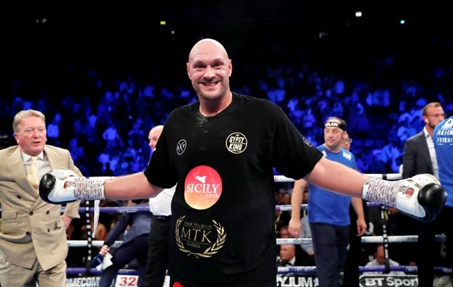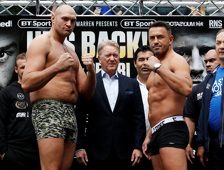 Место действия – большой стадион «Манчестер Арена» в Великобритании. Время – вечер субботы. В центре внимания – возвращение Тайсона Фьюри, глыбы, яркой личности и в прошлом самого опасного тяжеловеса планеты. В ноябре 2015-го он нанес первое за 11 лет поражение Владимиру Кличко, а потом потерял все завоеванные титулы из-за сорванных боев, проваленного теста на кокаин и тяжелой депрессии.