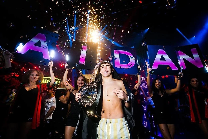 На прошлой неделе Дэйна закатил шикарную вечеринку в честь 16-летия сына Эйдана. Он арендовал ночной клуб Drai’s в Лас-Вегасе – мероприятие прошло в бассейне на крыше и длилось больше шести часов. Выступили звезды хип-хопа Migos и A$AP Rocky, давний друг Дэйны Everlast и DJ Carnage. В подарок Эйдан получил внедорожник Land Rover Defender (в переводе на рубли стоит порядка 16 миллионов) и стилизованный пояс чемпиона UFC. Сын Уайта не то чтобы далек от единоборств: в марте этого года он победил в первом бою в любительском боксе. Папа помогал ему в углу советами, а среди болельщиков в зале был бывший владелец UFC Лоренцо Фертитта.