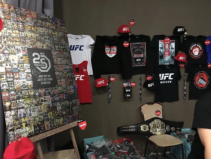 15:16 - До начала турнира еще почти три часа. А пока можно взглянуть на сувенирную лавку возле "Олимпийского". Желающие могут приобрести свой пояс чемпиона даже без титульного боя. Цена вопроса 12 000 рублей.