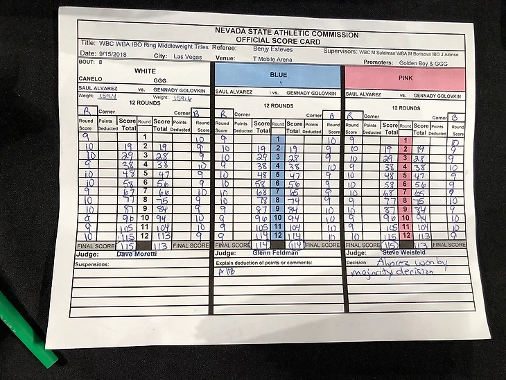 И судьи выставляют 114-114 и дважды 115-113 в пользу претендента, и таким образом новым чемпионом становится Альварес.