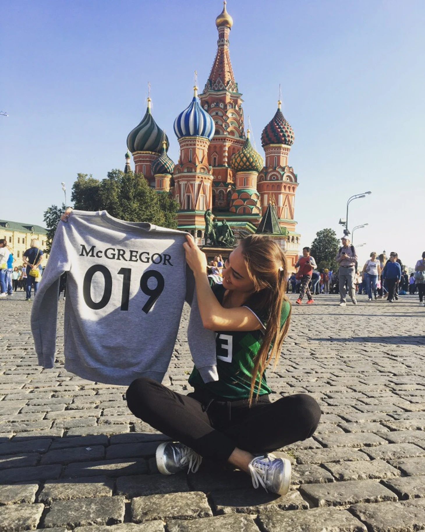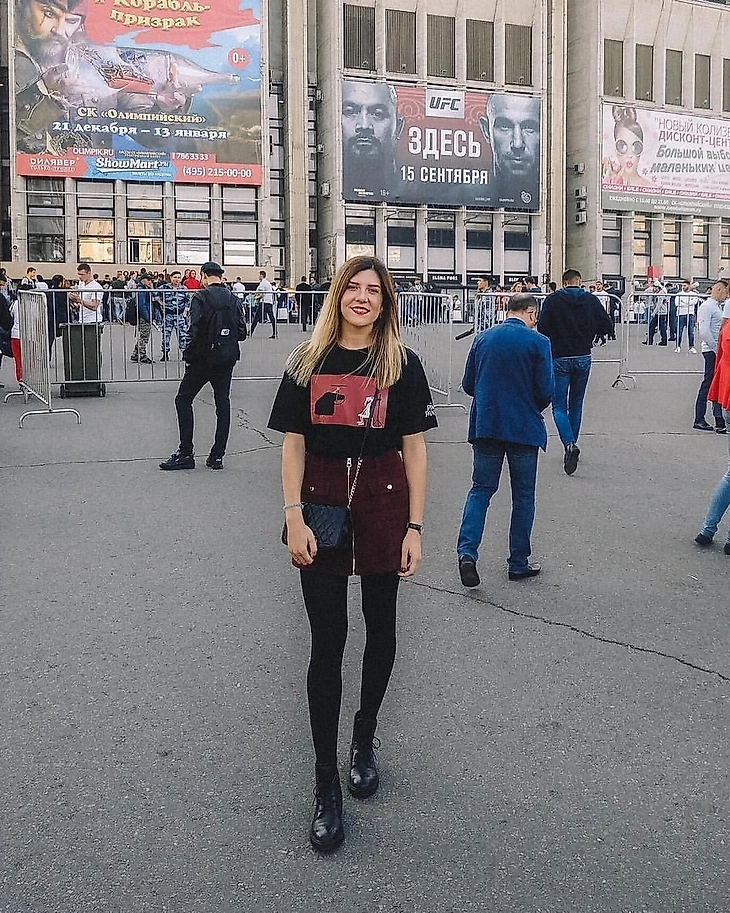 Хотя Абдулманап Нурмагомедов и говорил, что у Конора в России болельщиков нет, – первой у «Олимпийского» удалось обнаружить болельщицу именного ирландского суперпанчера.