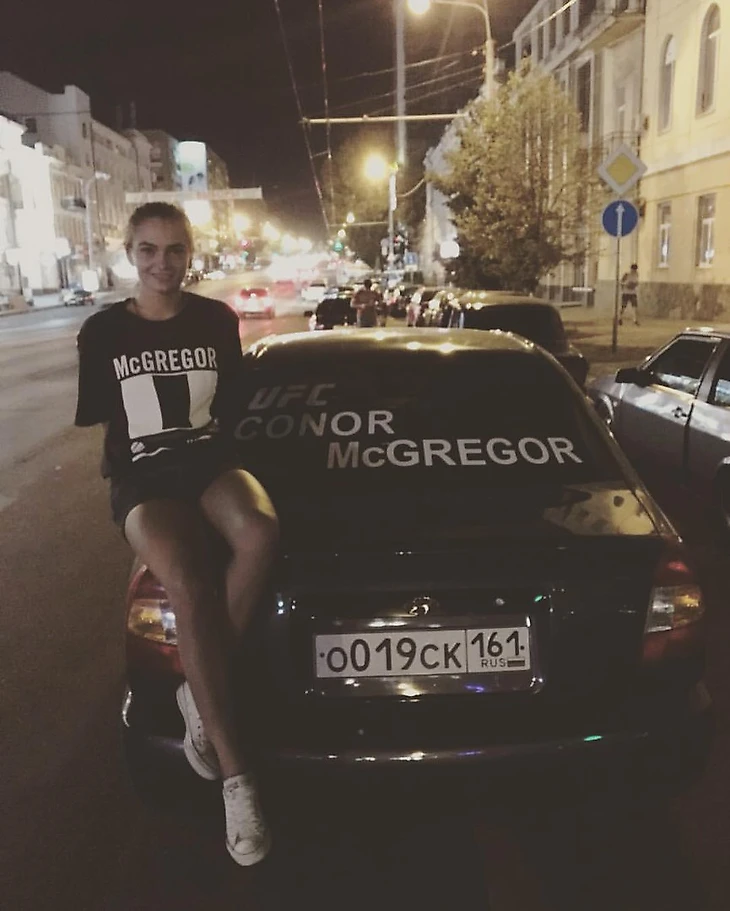 Диана – отчаянный персофан Конора. В дизайне своего авто тоже нашла место любимому бойцу.