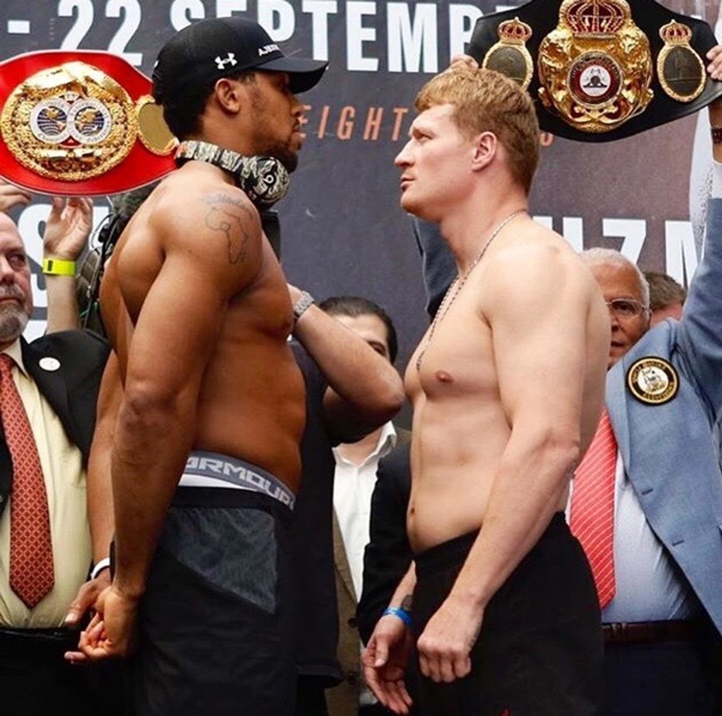Даже по этому фото с дуэли взглядом видно, насколько Джошуа больше и мощнее физически. Когда бойцы оказались в ринге, это стало ещё заметнее