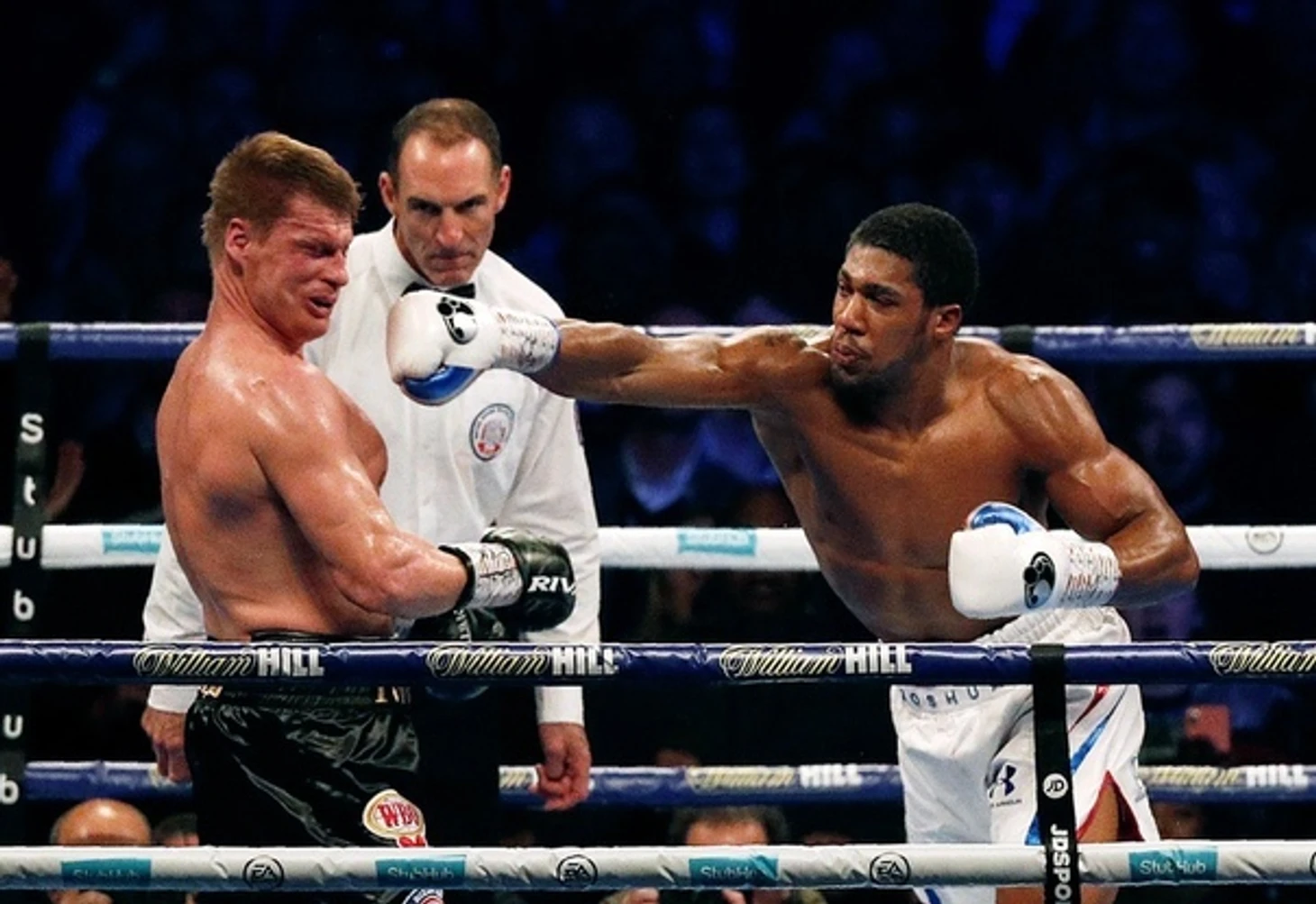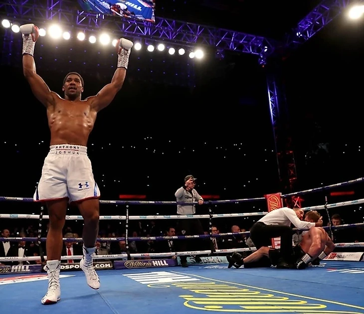 В седьмом раунде всё было кончено. Джошуа попал справа, и Поветкина "повело". Энтони почувствовал это и, словно разъярённый тигр, набросился на свою жертву. Несколько мощных попаданий - и Поветкин на полу. С трудом поднявшись на ноги, он тот час же был жестоко добит чемпионом