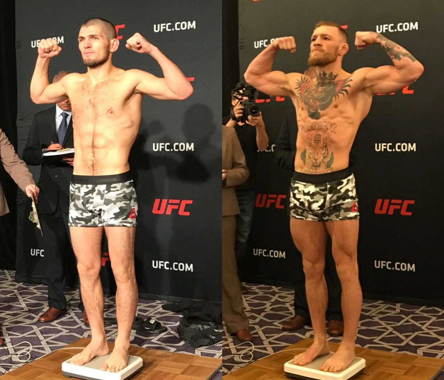 Фото дня. Дикая разница в мышечной массе и габаритах Конора и Хабиба со взвешивания UFC 205
