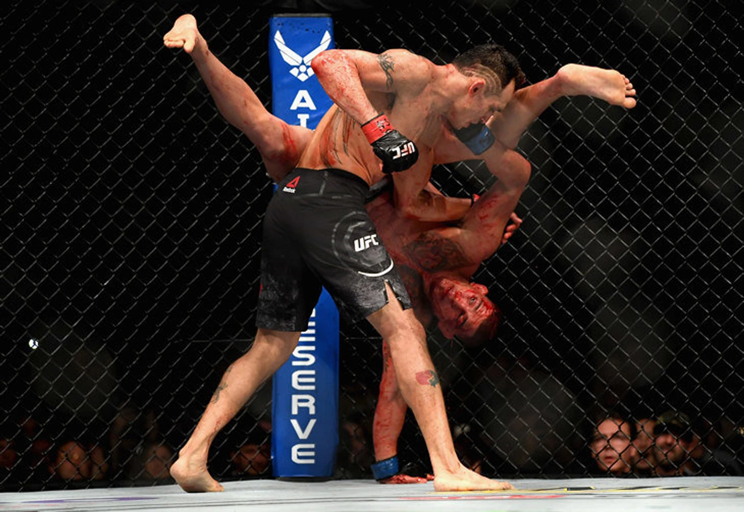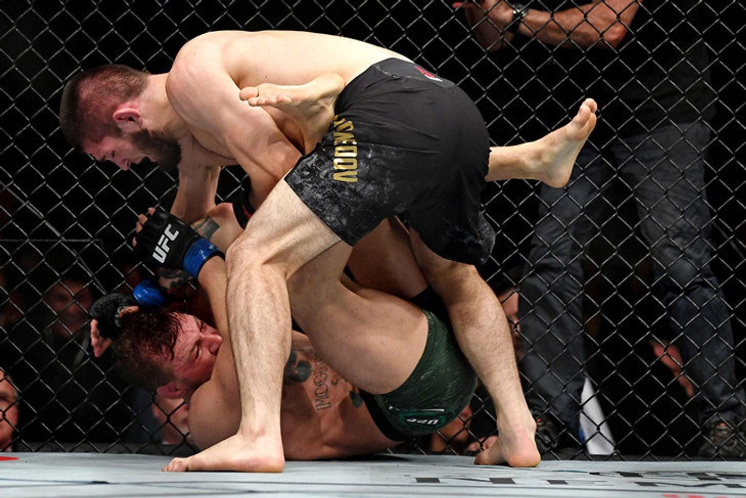 Конор вышел на третий раунд избитым, уставшим и с потухшими глазами. Бойцы дрались в стойке, и даже там дагестанец был лучше – ирландец низко держал руки и не мог мощно ударить. В четвертом раунде Хабиб повалил Конора, выиграл позицию и задушил.После остановки боя между командами бойцов завязалась драка прямо в октагоне, но кто победил там – уже неинтересно. Из-за свалки на центральном ТВ президент UFC Дэйна Уайт отказался вручать пояс Хабибу, но защита титула состоялась. Дагестанец покинул арену под летящие бутылки и свист ирландских фанатов.Хабибу наконец дали топового соперника. Отговорок больше нет. 27-0 в ММА. 11-0 в UFC.