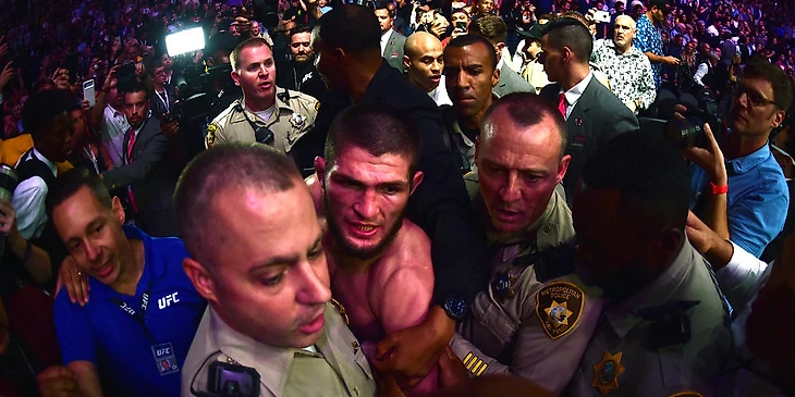 В итоге Макгрэгора увели под оглушительный рёв болельщиков, а Хабиба уговаривал остыть Дэйна Уайт.