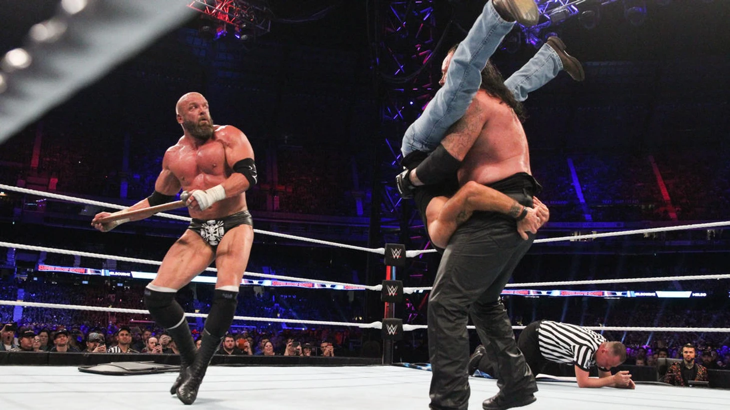 И это был тот самый классический случай, когда дрались они, а стыдно было мне, потому что скорость тут отсутствовала как класс, здравый смысл затерялся на пузе Гробовщика, а логика вертелась знаменитой кувалдой Игрока. После матча, на который нормальным болельщиком плевать полностью, легенды встали попозировать в центре ринга, но тут "Братья Разрушения" дали джазу и провели "могильные плиты" своим оппонентам, а "феном" ещё и "чоукслэм" Майклзу на комментаторский стол. Это означает, что грести нам этот песок ещё всю осень зиму и пол весны, пока Wrestlemania не успокоит их души.