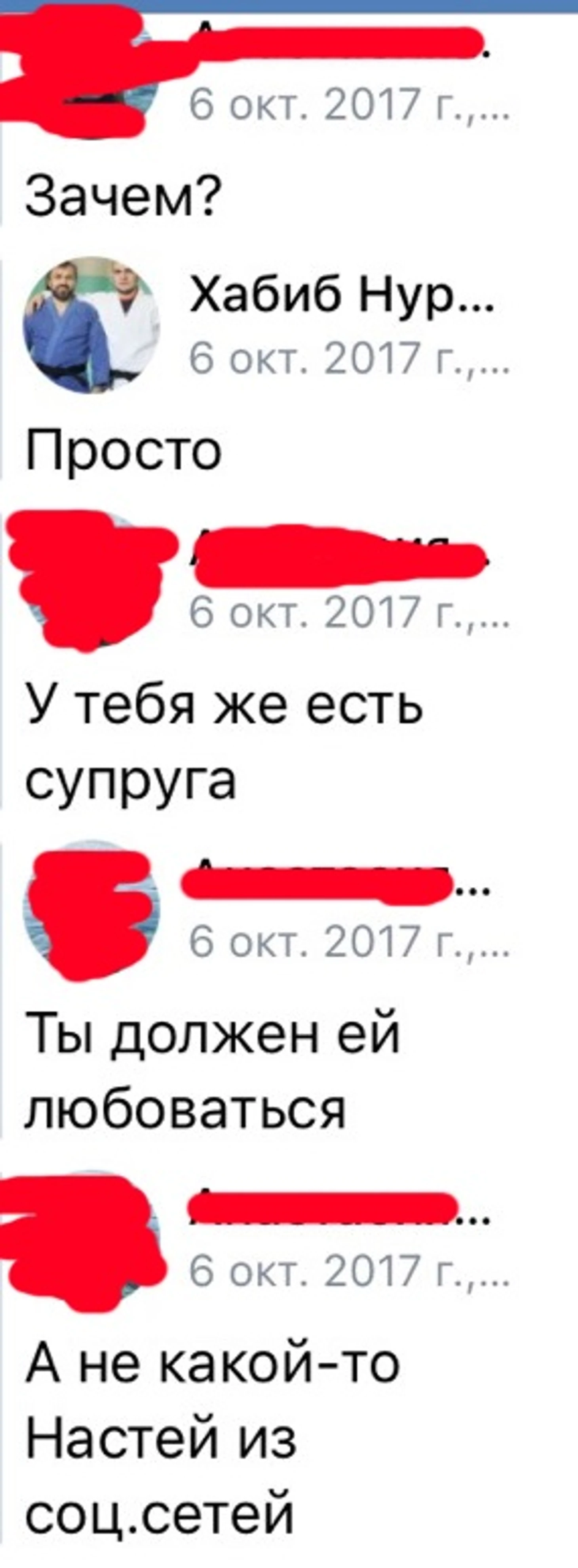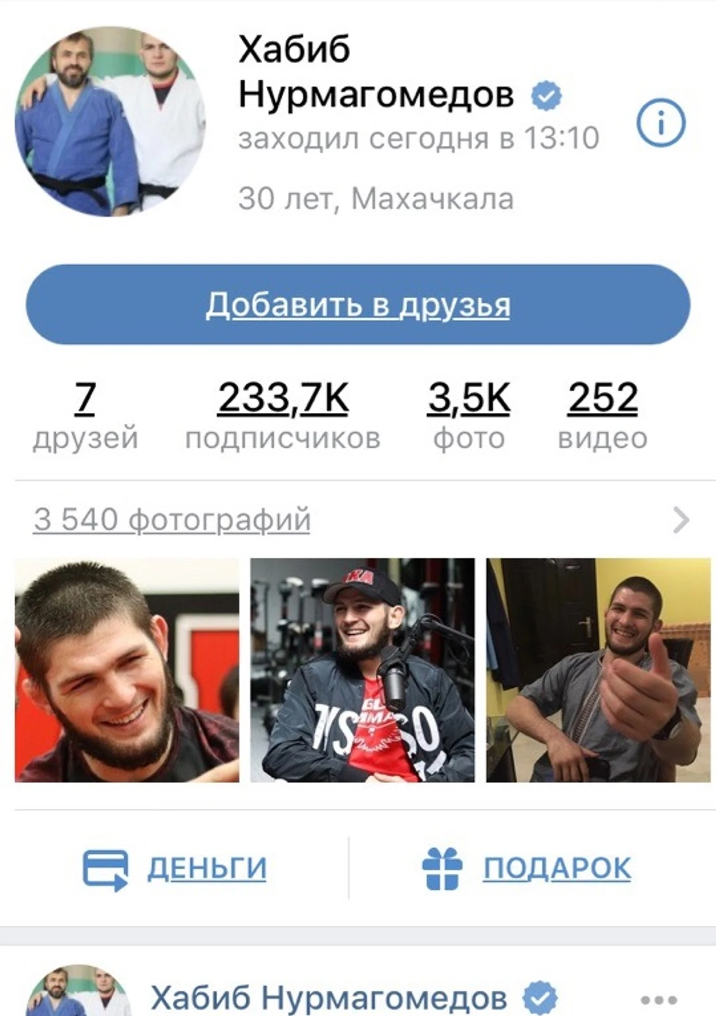 В социальной сети "ВКонтакте" распространяется диалог Хабиба Нурмагомедова. На скриншотах видно, как боец заигрывает с незнакомой девушкой. Сообщения написаны с подтверждённой администрацией сайта страницы. Не исключена вероятность взлома, но пока что это единственное, что приводит к таким выводам. Остаётся только ждать новых событий.