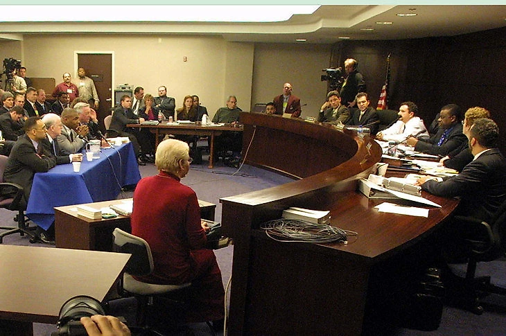 Майк Тайсон на заседании Спортивной комиссии Невады, 2002 год