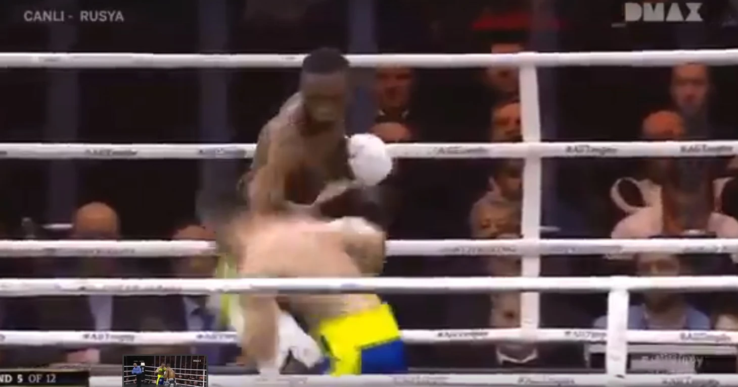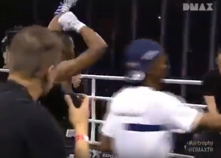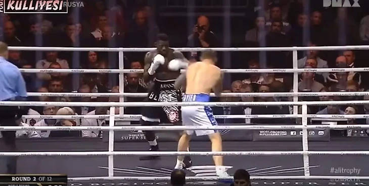 А в седьмом раунде точнее Тете, оба боксёра оказываются на полу, но это не нокдаун. Рефери сделал предупреждение чемпиону. 66-66 после 7 раундов.