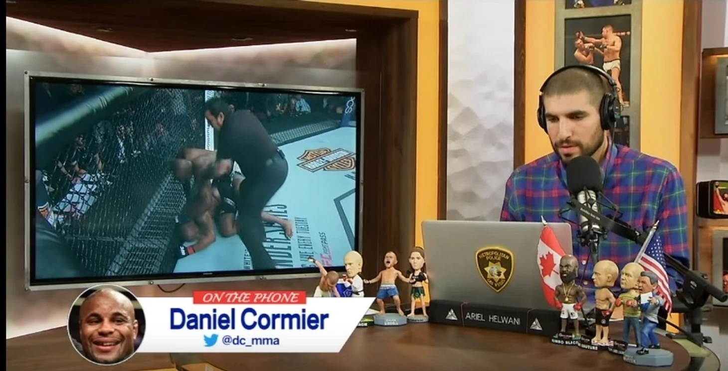 По иронии судьбы, спустя ровно месяц на абсолютно идентичной ситуации погорел ведущий ММА-журналист Америки и звезда ESPN - Ариэль Хельвани. В своем еженедельном подкасте он интервьюировал по телефону легенду UFC Даниэль Кормье и подвел беседу к теме 3-го боя Ди Си с Джоном Джонсом.