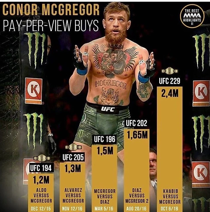 Количество продаж платных трансляций составило 2 400 000 подписок. Общая выручка с ивента - примерно $ 200 млн.