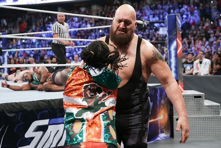 Есть подозрение, что этот тёрн, между прочим 31-ый в карьере, был сделан сценаристами WWE, чтобы люди вновь вспомнили про мем и тёрны Биг Шоу. Громила вышел во время матча "Нового дня" и The Bar, прописав "чоукслэм" Кофи Кингстону на комментаторский стол. Зачем он это сделал? Одному богу тёрнов лишь известно.
