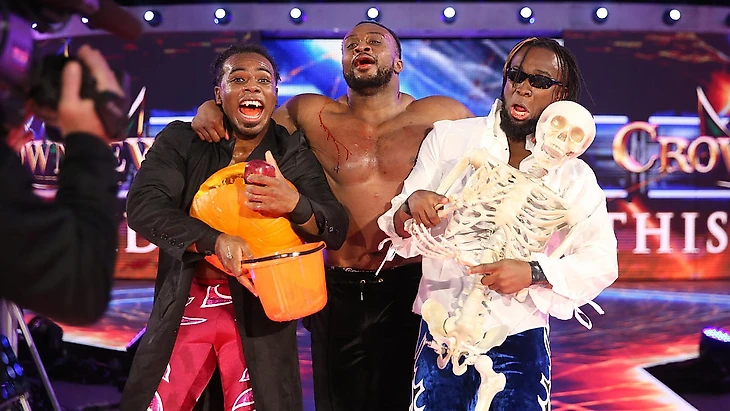 Что же касается матча, то он прошёл по стандартным канонам: броски в тыкву, купание головой в тазике с мочёными яблоками, палки кендо и прочие снаряды, навевающие улыбку зрителям. В концовке Ксавье Вудс и Биг И в лучших традициях "кровавого братства" плюнули красной жидкостью в лицо Биг Шоу и Сезаро, что и повлияло на финальный успех.