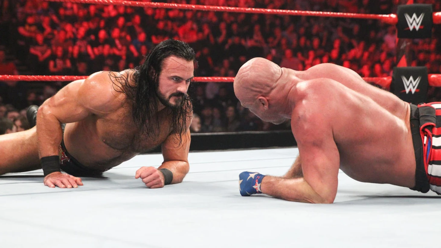 На протяжении последнего месяца тихой сапой нас подготваливают к тому, что шотландец потихоньку превращается в машину для уничтожения любого соперника. После того как Дрю несколько раз отважно напал на Брона Строумана, он переключил своё внимание на других участников ростера, и вчера вечером сначала Финн Бэлор словил "claymore", а в мейн-эвенте выпуска Курт Энгл был вынужден сдаться после "захвата лодыжки".