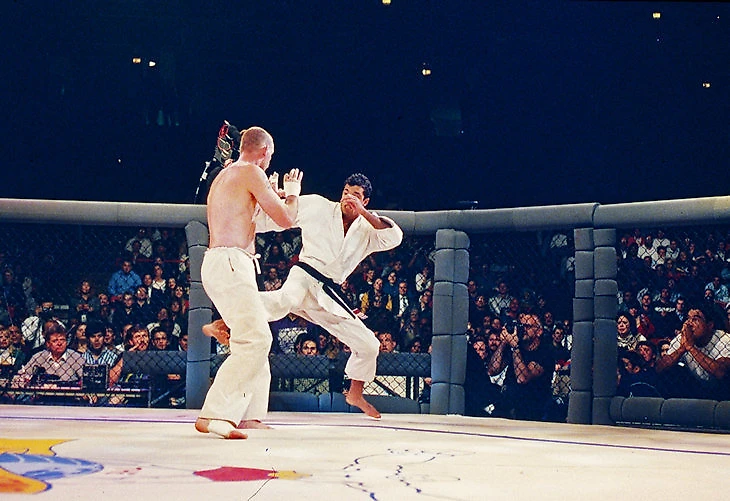 Пересматривая турнир сейчас, отмечаешь то, чего раньше не замечал. Растерянных комментаторов, с трудом объясняющих происходящий в октагоне ад. Бойцов, которые в панике молотят по полу в знак сдачи, и судей, которым еще страшнее, ведь они не знают, когда останавливать бой. Поединки здесь идут один за другим, боец может выйти на бой даже со сломанной рукой – никакая атлетическая комиссия его не остановит. Тот щуплый бразилец – это Ройс Грейси, который со своим джиу-джитсу навсегда изменил мир единоборств. А накачанный американец – Кен Шемрок, ставший чемпионом и возглавлявший 15 турниров UFC. Жерар Гордо, дравшийся с Грейси в финале, провел еще один бой в ММА (проиграл Юки Накаи в 95-м) и ушел в рестлинг, а сумоист Тейла Тули и вовсе больше не дрался, а стал актером сериалов (например, играл продавца креветок и осведомителя Камекона в «Гавайи 5.0»).