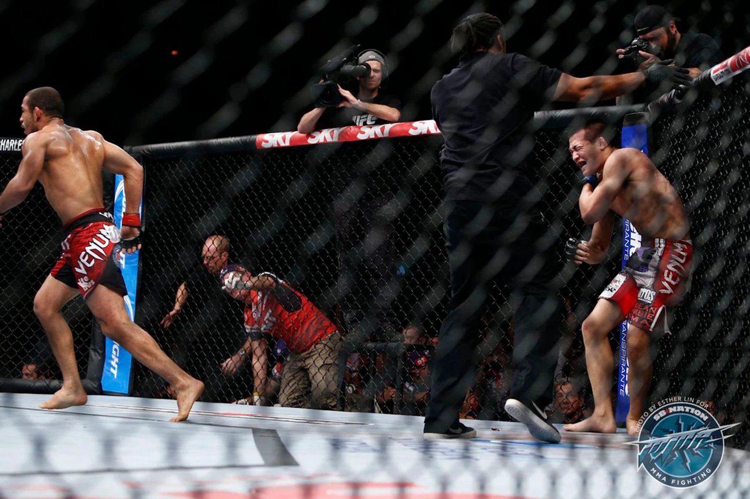 Увидя, как кореец начал зачищать полулегкий дивизион, промоушен дал ему титльник с Жозе Альдо. Бразилец на тот момент шел на сумасшедшей серии 23-1 и показывал один из лучших миксайтов в мировом pound-for-pound. Зомби оказался не готов к такому уровню оппозиции, проиграл3 раунда по очкам, а в 4 просто слег в брутальном ТКО, получив вдобавок серьезную травму плеча.