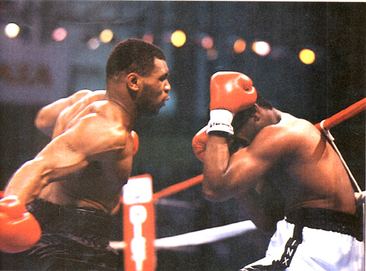 Описание: В июне 1988 года состоялся бой двух непобеждённых боксеров — абсолютного чемпиона мира в супертяжелом весе Майка Тайсона и бывшего абсолютного чемпиона мира в полутяжелом весе, а также бывшего чемпиона мира по версии IBF в супертяжелом весе Майкла Спинкса. В середине 1-го раунда провел левый апперкот в подбородок, а затем добавил правый крюк в корпус. Спинкс опустился на колено. Он встал на счёт «3». Сразу же после возобновления боя левым апперкотом в голову вновь отправил противника на канвас. Спинкс на счёт «10» всё ещё находился на полу и рефери остановил бой.