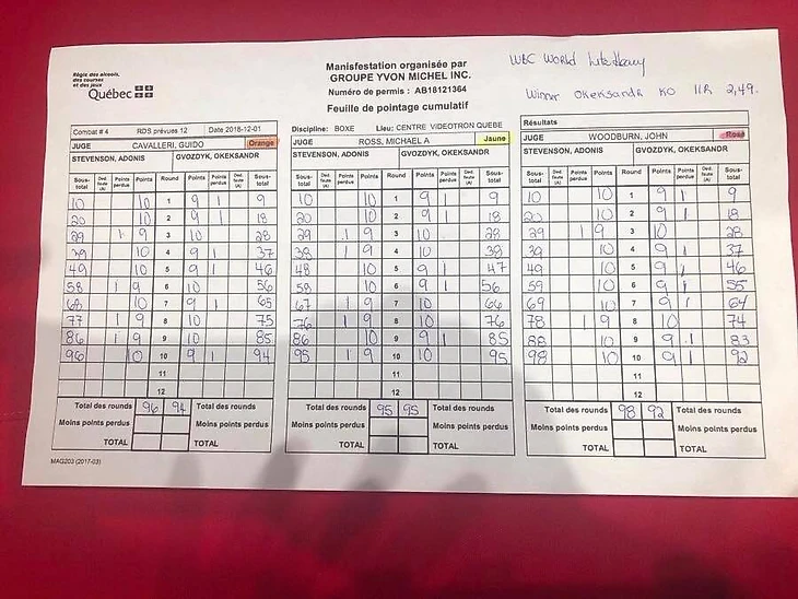 В десятом раунде «Супермену» удаётся потрясти претендента, «Гвоздю» приходится клинчевать, в концовке у Гвоздика проходит хорошая серия, но раунд убедительно за чемпионом. 97-93 боксёр из Канады ведёт в счёте.