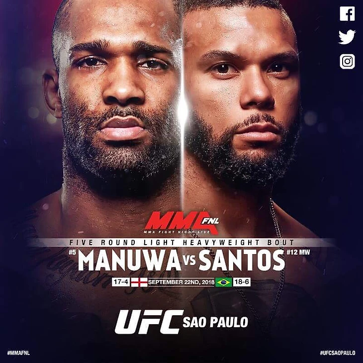 3. Тиаго Сантос против Джимми Манува - рейтинговый бой в полутяжелом весе