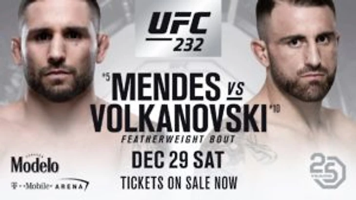 Открывать основной кард UFC 232 выпало полулегковесам. Экс-номер 1 рейтинга Чад Мендес встретится с набравшим хороший ход Волкановски. Этот поединок интересен, в первую очередь, с точки зрения перспектив обоих бойцов
