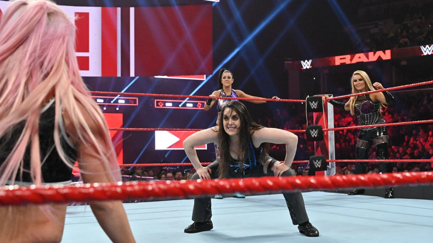 Вслед за этим на RAW добавился сегмент, в котором помощник заходит в раздевалку Алексы Блисс, а она там едва успевает прикрыть грудь кофточкой.