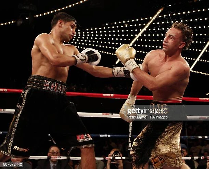 Британец пакистанского происхождения Амир Хан начал заниматься боксом в 11 лет. А уже 16 лет и вовсе стал звездой. В 2003 году он завоевал золотую медаль на юношеских играх в Литве. А уже через год Амир представлял Великобританию на Олимпиаде в Афинах, где был удостоен серебряной медали. После такого большого успеха он принял решения начать профессиональную карьеру. Хан в первых 13 боях одержал победу нокаутом. В 2007 году боксер стал обладателем чемпионского пояса в легком весе. Своего соперника датчанина Мартина Кристиансена боксер отправил на настил в седьмом раунде. Но уже спустя полгода Хан потерял свой титул. На 54-ой секунде британца нокаутировал Брейдис Прескотт. После этого Амир перешел в полусредний вес. В 2009 году он отобрал чемпионский пояс у украинца Андрея Котельника и провел серию удачных защит. Находясь в статусе чемпиона, Амир хотел драться только с лучшими. Он вызвал на бой Флойда Мейвезера.