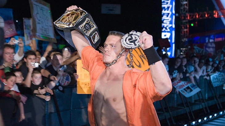 Во времена своей молодости Джон Сина носил цацки, зачитывал гангстерский рэпчик и вовсю косил под парня, что пришёл с улиц. Выиграв титул чемпиона WWE, он решил что тот выглядит не по-пацански, и решил сделать из него вертушку. В один прекрасный день он появился на RAW с поясом, в котором бляха W (одна из букв в аббревиатуре федерации) крутилась во все стороны. Общественность признала новый пояс, и его реплики уходили с лотков, как горячие пирожки.