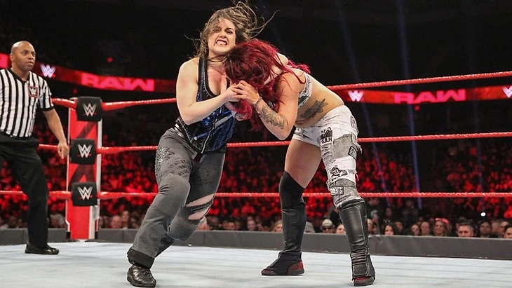 Начался бой с агрессивного чейн-рестлинга, после чего Никки попыталась безуспешно свернуть Руби, но уже в следующем эпизоде она встретила разбег оппонентки кроссбади. Слипперхолд последовал в исполнении Никки, от которого Райотт отбилась, и впечатала соперницу в угол коленями, но удержание только до 2. Ну а нам показали, как к Линч подошла Ронда (прямо во время матча), и она посоветовала Бекки извиниться-таки перед руководством, ведь на кону стоит что-то большее, чем гордость ирландки. И, да, если Бекки не извинится, то она покажет Ронде, что просто боится встречи с ней на WM. Нас вернули к матчу, и Кросс получила STO, но только до 2. Со временем Кросс отбилась от соперницы, только для того, чтобы получить кик по корпусу. Девушки перебрались на апрон, где Руби попыталась провести STO, но получила reverse DDT, и кроссбади с апрона на рингсайд. Затем «Разумная» вновь использовала»фартук» для атаки соперницы, собралась на полет с угла, но Райотт пресекла маневр, завершив матч своим Райотт Киком.