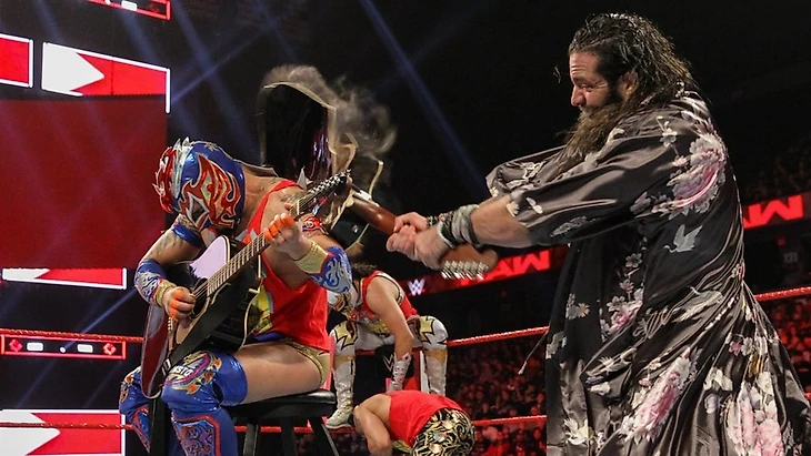 Далее на ринге очутился Элайас, который начал было вытворять свой классический стафф, но на титантроне нам показали Бекки Линч, который подошел Финн Балор, который сказал своей бывшей ученице, что, иногда лучше попридержать свою гордость, однако на конкретный вопрос «Мне извиняться?» ответил, что не будет давать четких указаний. Затем он вновь был прерван, на этот раз промкой матча Роллинса и Леснара. И снова его прервали, на этот раз Lucha House Party. Наконец музыкант психанул, и наорал на лучадоров, и вообще на всех, потому что, во-первых, он устал от того, что все прерывают лучшего певца на планете. Во-вторых, его альбом не был номинирован на Грэмми, так что он написал песню для себя, которую он собирается исполнить. Калисто же извинился перед Элайасом, но дело в том, что они с ребятами подумали, и решили, что они хотят to walk with Elias. Тогда наконец исполнитель решил спеть, и спел песню, в которой прошелся по городу, в котором проходит RAW, пол местным лузерам и их родителям. Он спросил мнения у LHP, и они сказали, что песенка так себе. Элайасу такое отношение не понравилось, ведь никто не понимает, насколько сложно быть Элайасом, неужели лучадоры считают, что они могут играть на гитаре лучше, чем он. Линсе Дорадо заявил, что вообще-то он танцует, Гран Металик поет, а Калисто все-таки решил сыграть на гитаре. И, знаете, публика встретила его игру положительно, но по факту он сыграл парочку простых переборов одного аккорда. Но Элайас все-таки похвалил его и предложил сыграть вместе… после чего взял гитару и разбил инструмент об его спину, сбежав затем за кулисы.