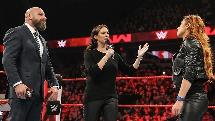 Шоу началось, а на ринге уже стояли Трипл Эйч со своей женой… ну или Стефани МакМэн со своим мужем, смотря кто в их паре главный. Стефани поприветствовала фанатов и напомнила нам о том, что в воскресенье нас ждет PPV Elimination Chamber, на котором определятся первые в истории женские командные чемпионки. Хантер же отметил матч за чемпионство WWE, который также пройдет в клетке, и Брайан будет защищать титул от пятерых соперников. Стеф вспомнила, что Ронда будет защищаться от Руби Райотт (фанаты встретили упоминание имени чемпионки скромным гулом), и Трипл Эйч сказал нам, что на «Мании» Ронда должна защищать свое чемпионство от «мужика» Линч… должна была, пока не произошло то, что произошло на прошлой неделе. Далее последовали хайлайты того, что произошло на еженедельниках неделю назад. После этого МакМэн заявила, что несмотря на атаки Бекки, руководство хочет сделать то, что лучше для бизнеса, так что Линч все-таки прошла медосмотр, и его результаты… Тут заиграла музыкальная тема ирландки, которая похромала к рингу. После чантов «Becky! Becky!» победительница Королевской Битвы поприветствовала руководство, а «Игрок» извинился перед рестлершей под чанты «What?» за то, что обвинил Линч в том, что она боится матча с Рондой на «Мании». Далее Трипл Эйч поведал, что врачи WWE связались с врачами Бекки, и они сошлись на том, что рестлерша, при должном подходе, сможет восстановиться после травмы через 2 недели, так что МАТЧУ НА WRESTLEMANIA БЫТЬ. Но Стефани поведала, что матч состоится только в одном случае: если Линч извинится за то, что она натворила неделю назад. Естественно, Бекки это пришлось не по душе, равно как и фанатам. Исполнительницы посчитала, что ей не за что извиняться, и на ее взгляд руководство просто пытается поставить на ее пути еще одно препятствие. Она не доверяет МакМэнам, потому что они подставляли исполнителей на протяжении десятилетий. Так что она будет драться, и будет драться и со Стефани, и с Трипл Эйчем, с кем только придется, но она добьется того, чего хочет. Личн уже собралась покинуть ринг, но ее остановила Стеф, и дамы принялись кричать друг на друга. Хантер женщин успокоил и спросил у Бекки, чего она хочет: драться сейчас тут с ними (фигурально выражаясь) или драться на WrestleMania? Так что ей лучше хорошенько подумать, стоит ли ее гордость мечты о матче на главном шоу года. Руководство удалилось с ринга, а к рингу стали выходить исполнительницы, которые примут участие в следующем матче.