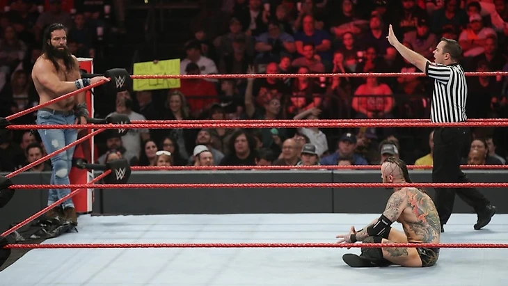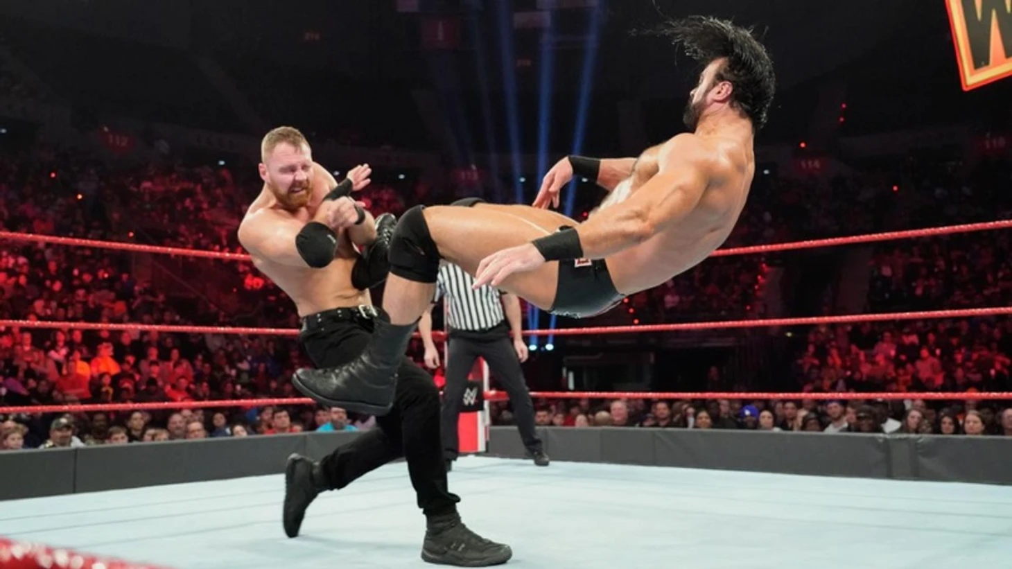 Как и ожидалось, Дрю начал матч максимально агрессивно, хотя и Эмброузу было, что ответить шотландцу. К сожалению, мы так и не увидели хороший матч. Практически сразу МакИнтайр опомнился и провел сразу два Клеймор удара бывшему чемпиону WWE, после чего удержал до трех.