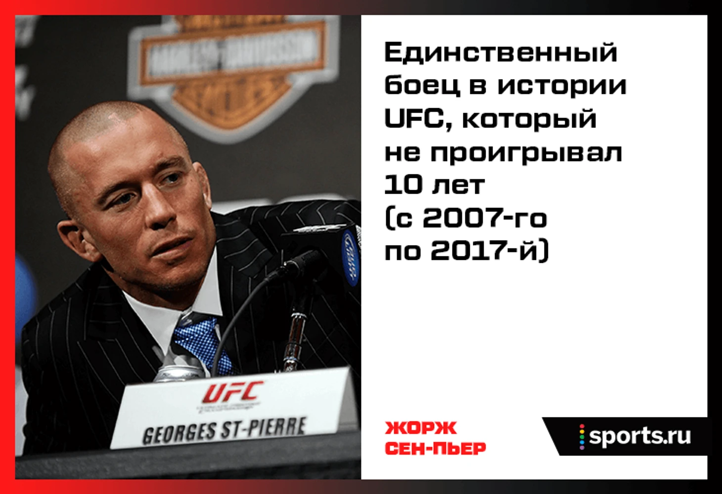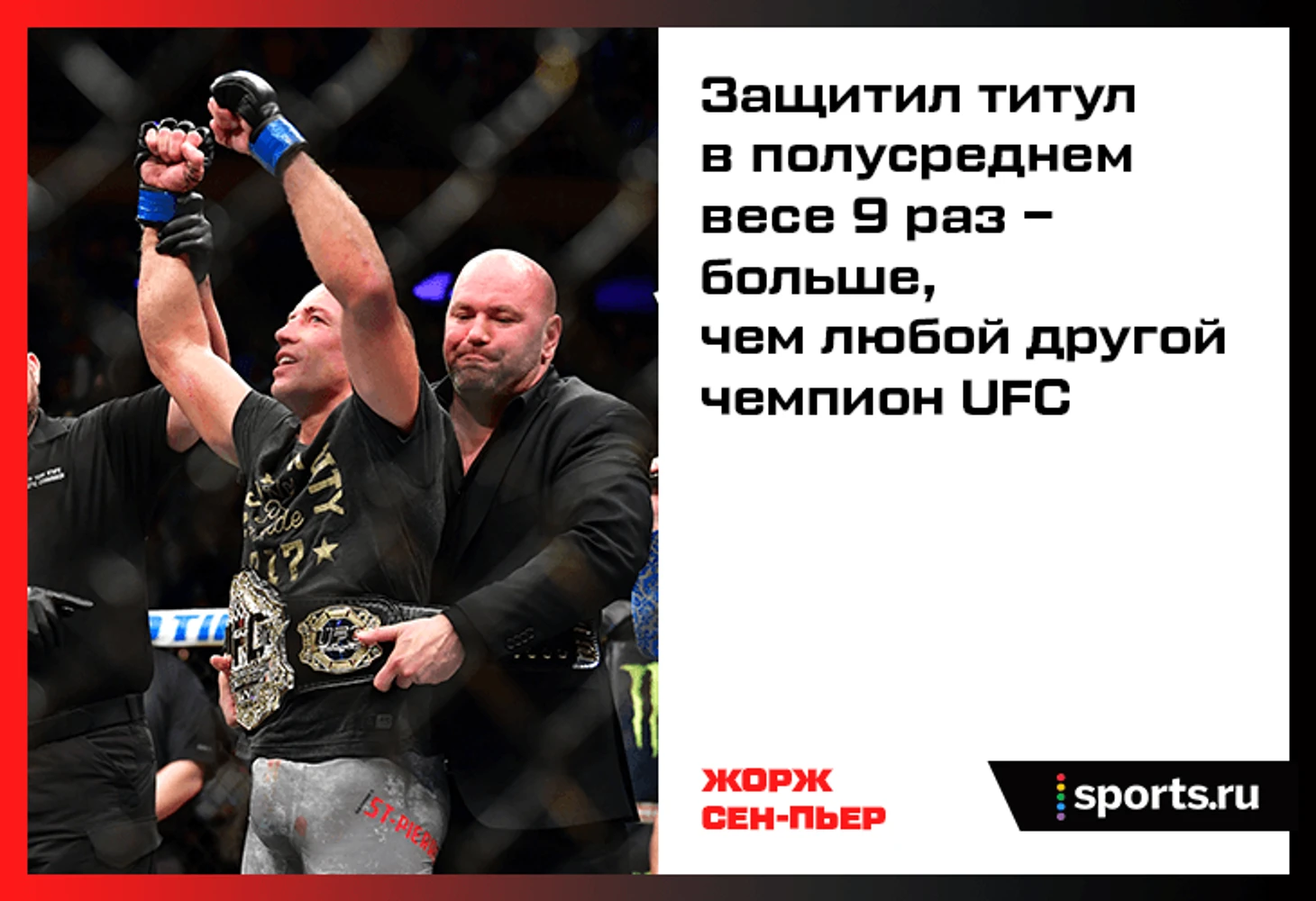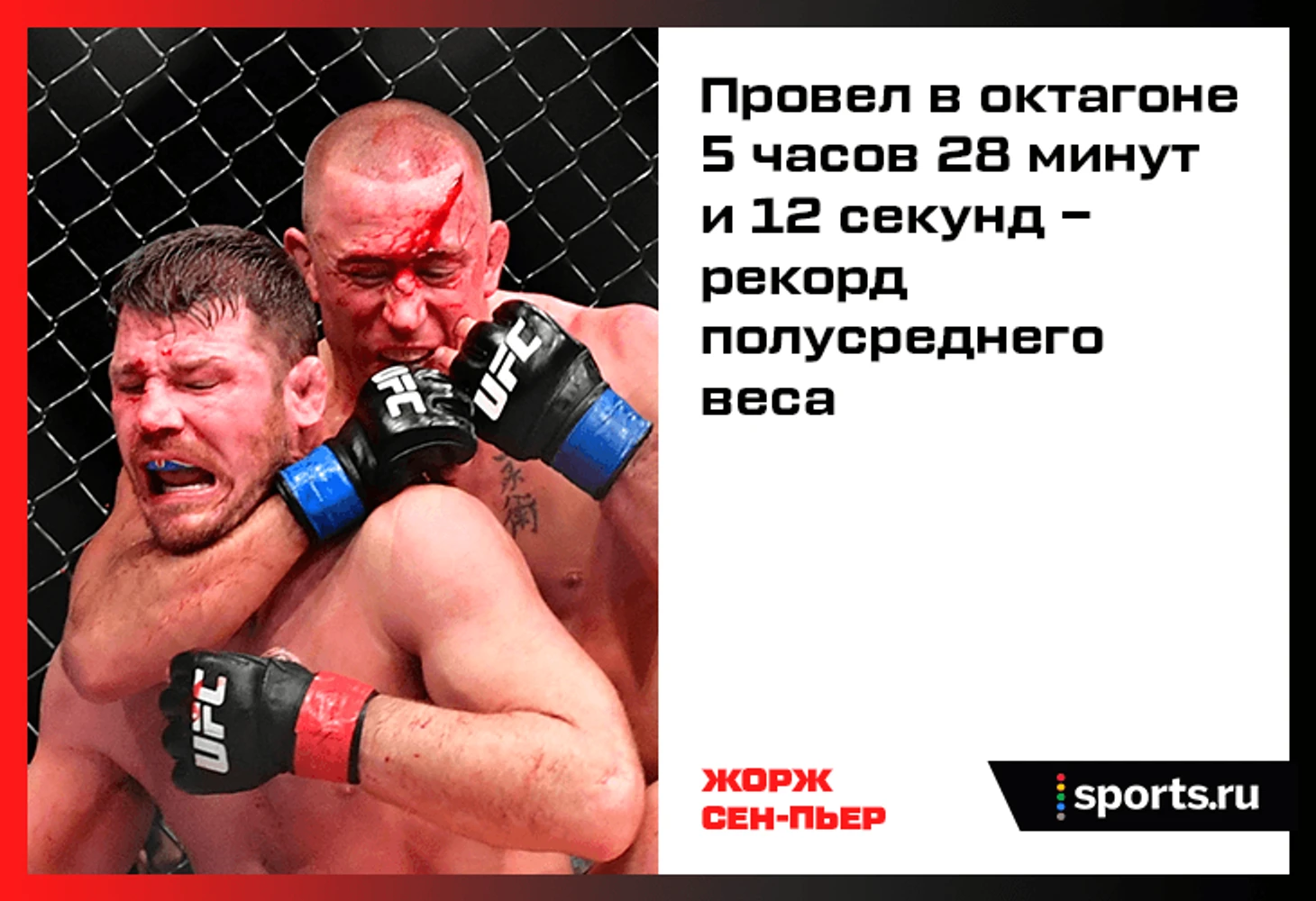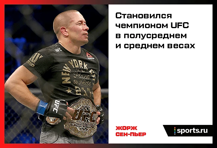 Последние шесть лет канадец выступал редко: с марта 2013-го Сен-Пьер провел всего три боя, последний – в ноябре 2017-го. Тогда Жорж впервые поднялся в средний вес и в третьем раунде отобрал титул у Майкла Биспинга. Правда, защищать пояс не стал и вернулся в инактив – Сен-Пьер говорил, что вернется только если предложат большой бой.
