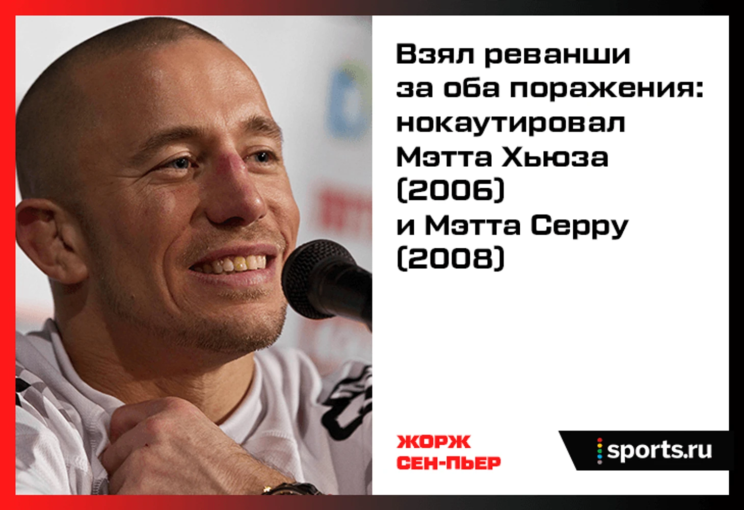 Канадец Жорж Сен-Пьер – возможно, величайший боец ММА. Он всесторонне развит: отлично борется, бьет руками и ногами, а превосходный бойцовский интеллект позволяет ему контролировать ход поединка. Сен-Пьер выиграл 26 боев при двух поражениях, а сегодня объявил об уходе. «Стать чемпионом очень непросто. Нужно приложить немало усилий, быть дисциплинированным. Я ухожу из спорта. Никаких слез – я счастлив. Нужно много дисциплины, чтобы уйти на пике. Настало мое время. Я всегда хотел уйти на пике и здоровым», – сказал Сен-Пьер на пресс-конференции в Монреале.