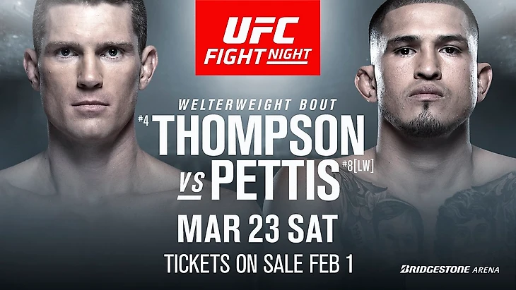 Кто: Стивен Томпсон - №6 (14-3-1; 9-3-1 UFC; серия - 1-2-1) vs Энтони Петтис - №8 LW (21-8; 8-7 UFC) - до 77 кг.