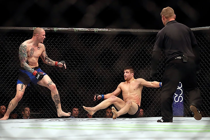 После возвращения Смит выиграл четыре боя при двух поражениях. В прошлом году американец поднялся из среднего веса в полутяжелый – это решение стало ключевым. У Энтони была безумная весогонка перед встречей с Тиаго Сантосом. Он сбросил 18 килограммов, чтобы влезть в категорию. В бою Смит выглядел вялым и пропустил удар вертушкой в печень уже на первой минуте. Брутальный нокаут заставил Смита задуматься о смене дивизиона.