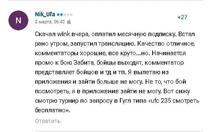 Но в начале марта пользователи сервиса не смогли посмотреть UFC 235 даже за деньги.