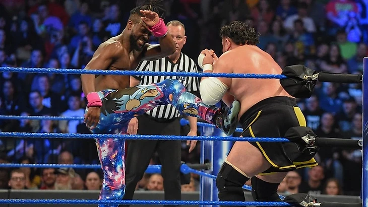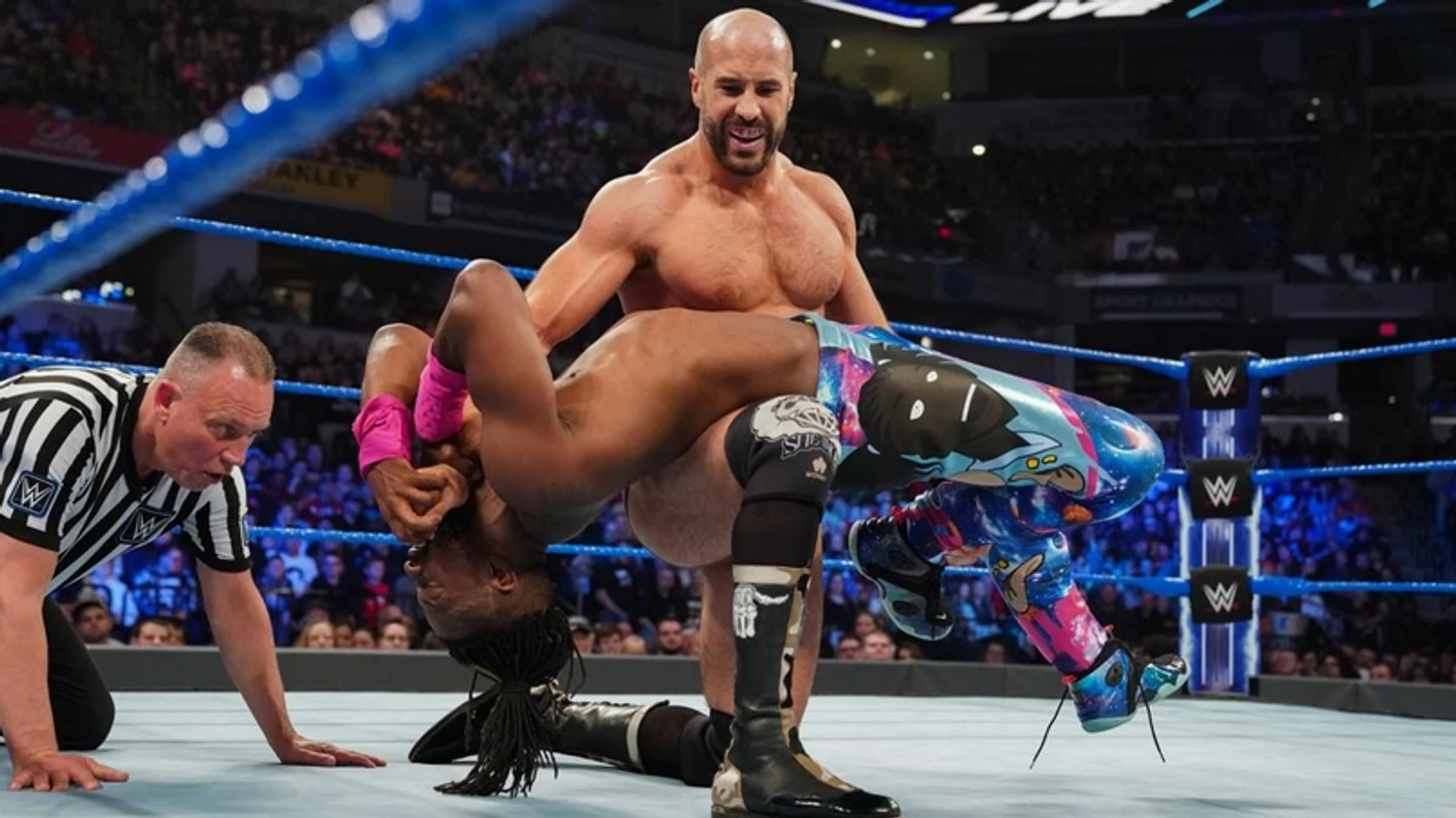Сезаро сразу же обрушил град европейских апперкотов на Кофи. Простой суплекс на Кофи, после которого Кофи, казалось бы, оклемался, но вновь попался на еще более сильный суплекс.