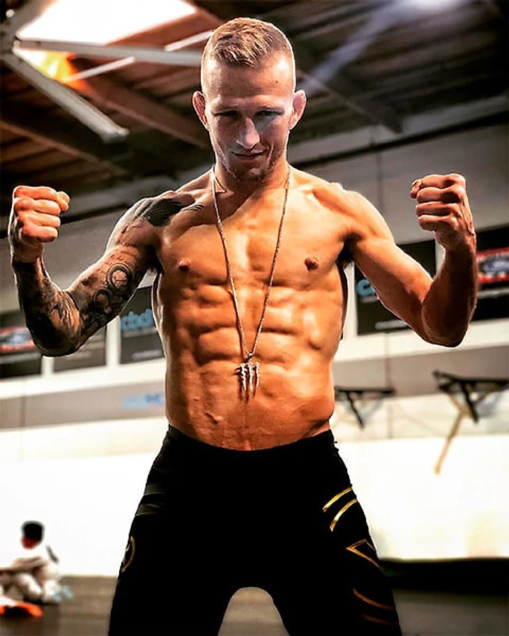 Ти Джей Диллашоу – один из главных ЗОЖников UFC. Чемпион в легчайшем весе внес в тренировочный процесс научные идеи, сидит на сложной кетодиете (низкоуглеводная диета с повышенным содержанием жиров и умеренным содержанием белков), скрупулезно считает калории и в 33 года выглядит на 25.