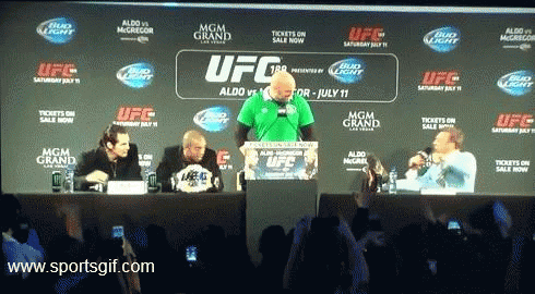 Фантазия Конора этим не ограничилась, и под угрозой оказался непобежденный в боксе Флойд Мэйвезер. Который на пресс-конференциях был отшлепан.