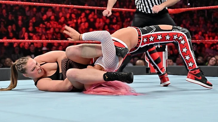 Это был матч имени Бекки Линч. Она вынесла Лив Морган дропкиком, разобралась суплексом с Сарой, и только собиралась заломать руку Лив, как Шарлотт украла тэг, а у нее, в свою очередь, переняла тэг взяла Ронда, которая воплотила планы Линч в жизнь и Лив сдалась. Ронде показалось мало, и она напала на Шарлтот. К драке подключилась Бекки и отряд полиции. Естественно, толпа мужиков не могла справится с великим феминизмом и тремя профессионалками, и решила запереть их в машине. Всех троих в одной машине. Гениально. Естественно они от туда выбрались, разбив стекло, и их уже растащили по разным машинам. Шарплотт решила помочь полиции и утихомирила Ронду прямым попаданием колена в голову. Я даже не представляю, что будет на Мании.