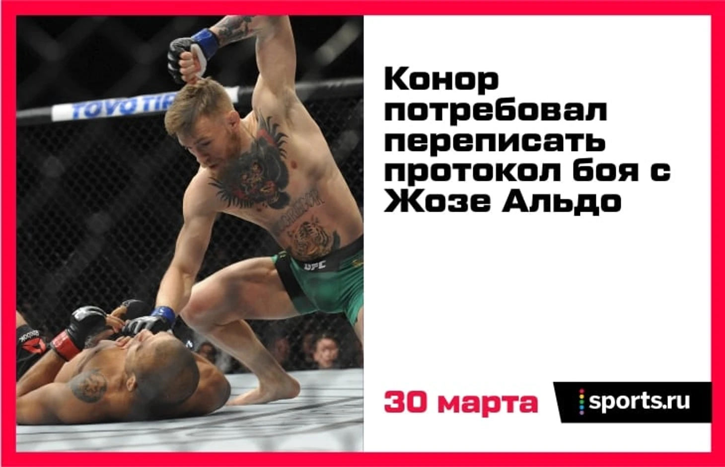 «Я уложил его за 12 секунд! Было 12! Внимательно посмотрите гифку и обратите внимание на часы! 4:48 в первом раунде. Требую, чтобы это исправили». Все знают бой Альдо – Макгрегор из-за 13-секундного нокаута, но ирландец требует, чтобы цифра была как в его виски Proper 12.