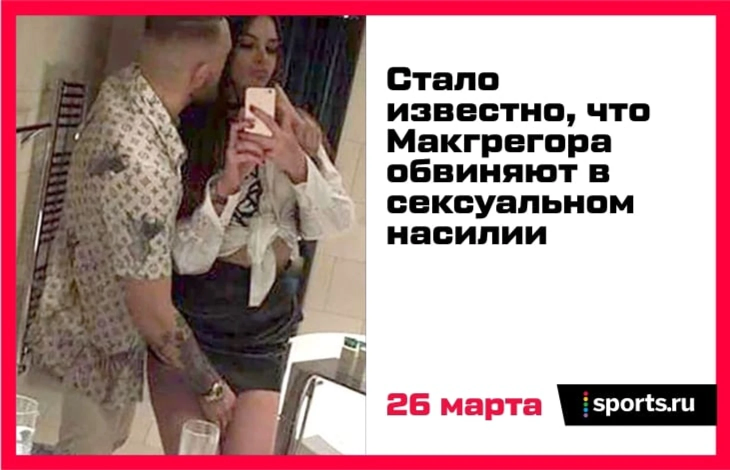 Вечером того же дня выяснилось, что ирландская полиция расследует дело Конора – его подозревают в сексуальном насилии. Инцидент якобы произошел в декабре. В январе Макгрегора арестовали и допросили. Сейчас расследование продолжается, но официальных обвинений в адрес бойца не выдвигали.