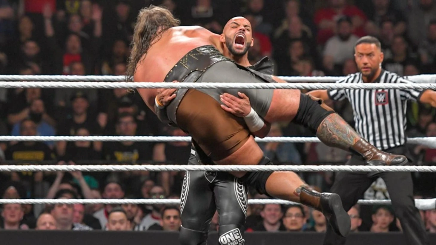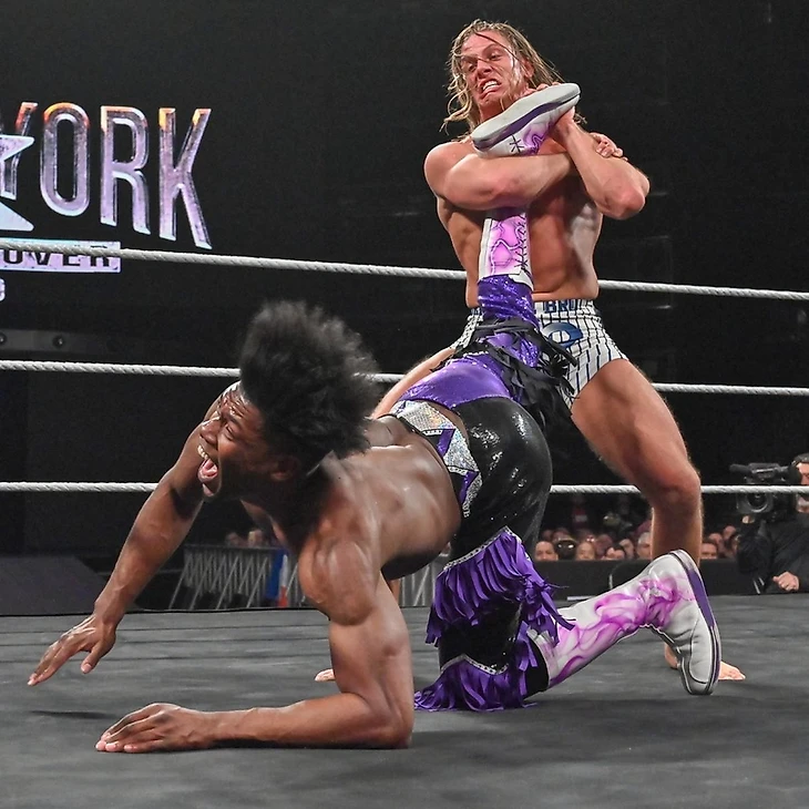 Пока Джонни Гаргано готовится к бою всей своей жизни, нам показывают присутствующих в зале Тони Шторм и- сюрприз, сюрприз - Пайпер Нивен, более известную, как Вайпер, новейшее подписание NXT UK. Как бы нам не хотелось порассуждать об ее будущем, останавливаться некогда, ведь впереди бой за Североамериканское Чемпионство NXT между двумя самыми колортными исполнителями бренда. И здесь тоже не обошлось без отсылок во время выходов: Риддл примерил на себя форму знаменитых Янки, а Вельветин, как всегда, устроил мини-перформанс: он примерил на себя обличье Леди Свободы. Вот такая вот вельветиновая американская мечта.