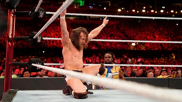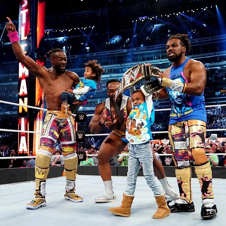 Тут же прошел SOS, и Дэниел моментально вышел на Rebel Lock, но Кингстон отказывался сдаваться и сумел дотянуться ногой до каната. В ход пошли кики Брайана, но Кофи стоял на ногах и отказывался чувстовать боль от этих ударов. В итоге, он стал отвечать собственными киками, но Брайан сумел-таки выйти победителем из этого эпизода, однако, Кингстон уклонился от последнего удара и шарахнул реверс суплекс, но вновь лишь до 2. Брайан укатился за ринг, Роуэн стал мешать Кофи добраться до чемпиона, затем побил Вудса и Биг И, за что получил Trouble In Paradise и Midnight Hour. Дэниел в этот момент зашел на попытку суисайд дайва, но Кофи ее прервал. Подготовка к Trouble In Paradise, но Дэниел ушел и провел колено, удержание, 1, 2, нет! Фанаты выдохнули и принялись опять чантить имя своего любимчика, чемпион WWE принялся топтать лицо представителя Нового Дня, второй Rebel Lock, Кингстон стал терять силы, но не сдавался, судья стал проверять состояние Кофи, но он не стался, сумел выбраться из болевого, нанес множество ударов претенденту и сам принялся наносить стомпы по лицу. Trouble In Paradise, удержание, Кофи Кингстон новый чемпион WWE!!! Арена взорвалась, Кофи, Вудс и Биг И еле сдерживают слезы, большинство из нас тоже, а затем друзья Кингстона достали оригинальный чемпионский пояс и вручили его Кофи, который разделил этот момент со своими друзьями и сыновьями, а в небо полетели салюты. Новый День достали новый чемпионский мерч из заранее подготовленной подарочной коробки. Чанты «You Deserve It!». Вот это называется A Moment of WrestleMania.