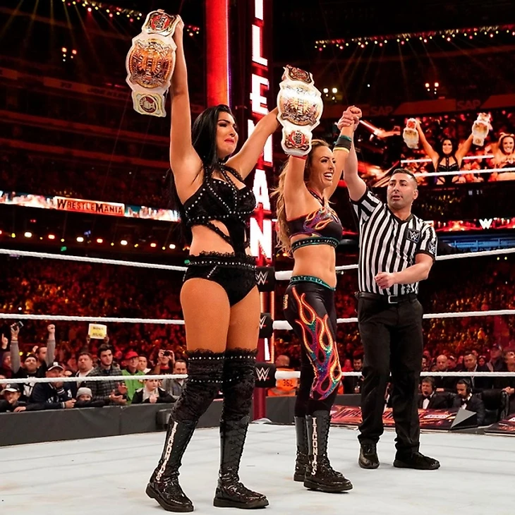 Алекса Блисс объявила нам, что WrestleMania 35 посетило 82265 человек. После этого Ар-Труф и Кармелла устроили нам Dance Break.