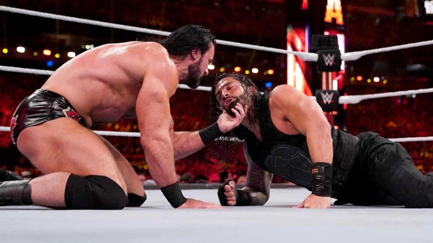 Во время выхода МакИнтайра на рампе выстроился целый шотландский оркестр. Роман начал с нескольких неплохих панчей и самоан дропа, но для победы этого оказалось недостаточно. Однако «Большой Пес» продолжил доминирование, видимо, разогнался для гарпуна, но попал под спайнбастер Дрю, но удержание только до 2. Хэдбатт от шотландца, и Роман ускользнул на ринсайд, где сумел уйти от атаки Дрю так, что тот остался между канатов, а Роман провел легдроп бульдог. Рестлеры вернулись в ринг, и МакИнтайр шарахнул мощный хэдбатт. Большой фоллэуэй слэм и Дрю принялся мучить Романа в болевом. Роман отбился от болевого, отправил соперника на апрон и провел клоузлайн от которого Дрю упал на рингсайд. Попытка Drive by дропкика, но МакИнтайр ушел и провел неплохой суплекс на рингсайд. Исполнители вернулись в ринг, тут еще и реверс Алабама слэм подоспел от Дрю, однако и его для победы недостаточно. Продолжив свою доминацию, МакИнтайр собрался провести суперплекс, но Рейнс отбился… только для того, чтобы Дрю провел спайдер суплекс. Выход, видимо, на Dirty Deeds в исполнении шотландца, но Роман отбился, за что получил пощечину. Это разозлоло самоанца, поэтому он провел мощный клоузлайн, а биг бут отправил «шотландского психопата» за пределы ринга. Drive by дропкик удался, Роман вернул визави в ринг, но тот опять сбежал на рингсайд, где Рейнс достал его самоан дропом. Еще один клоузлайн в ринге, попытка супермэн панча, но МакИнтайр ответил хэдбаттом. Супермэн панч все-таки прошел. Мощный гарпун, удержание, и Роман победил.