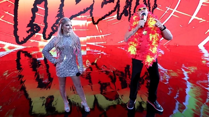 Основное шоу открыла Алекса Блисс, которая поприветствовала публику и заявила, что как ведущая WrestleMania, она может создать WrestleMania Moment просто щелкнув пальцами. И чтобы это доказать, она щёлкнула этими самыми пальцами... и появился Халк Хоган! Какое-то время они вместе то ли позировали для фотографов, то ли развлекали зрителей, но тут появился Пол Хейман и направился к рингу. Адвокат отметил, что если Брок не собирается долго возиться с соперником, то надолго они в Нью-Йорке не задержатся. Брок сделает дело, вместе с менеджером сядет в самолет и отправится в Лас Вегас, где Леснара ценят намного больше.